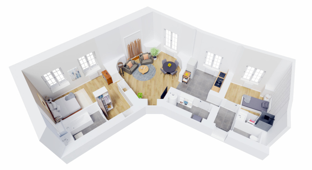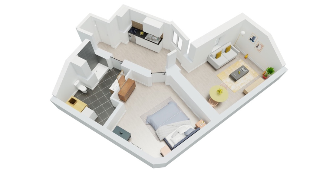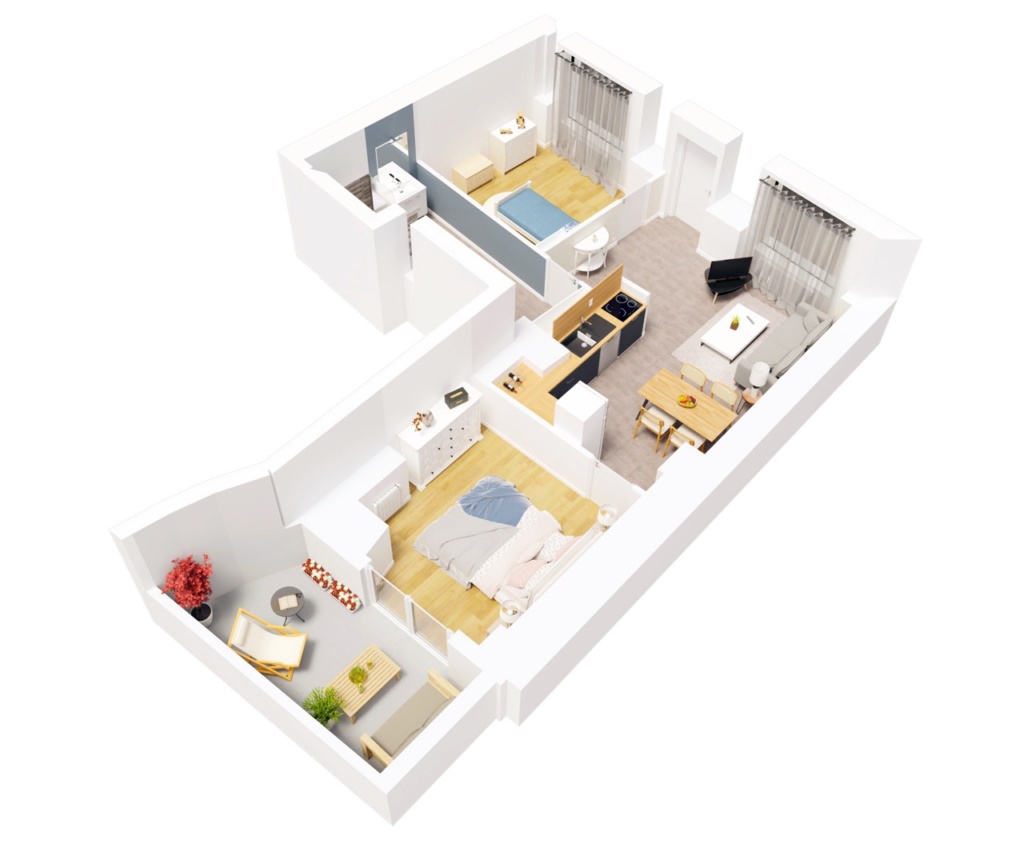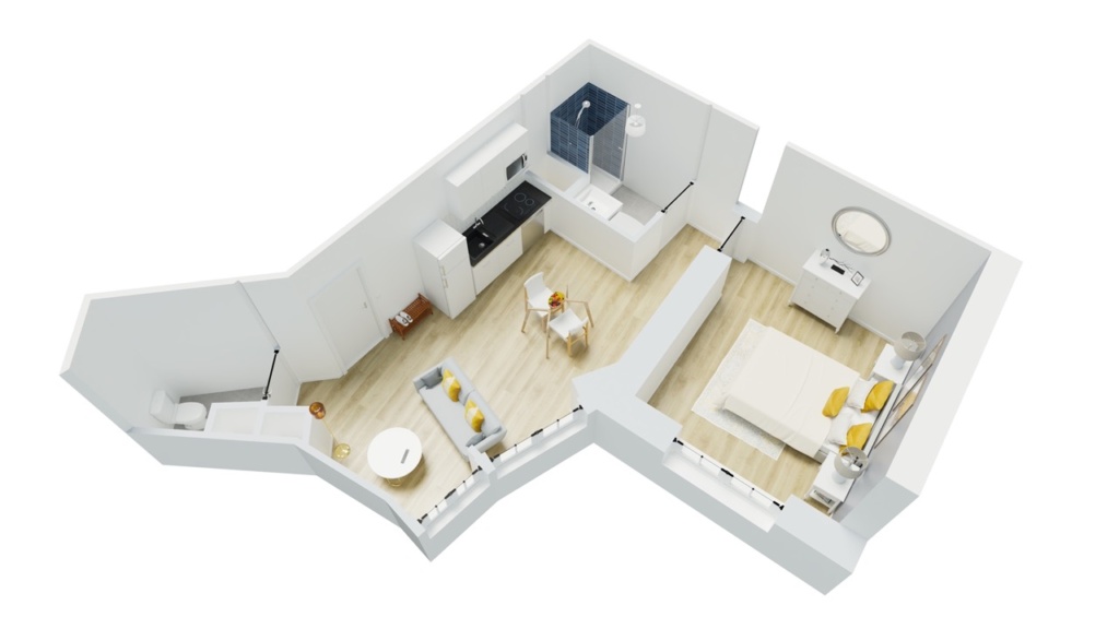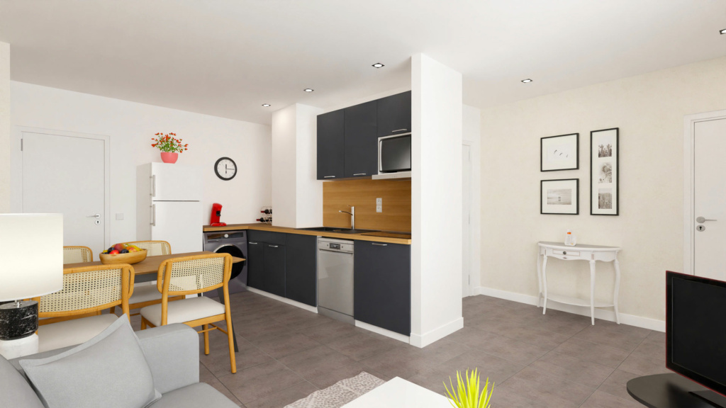 Appartement 1.2 – Type 2 au 1er étage. Image de synthèse non contractuelle.